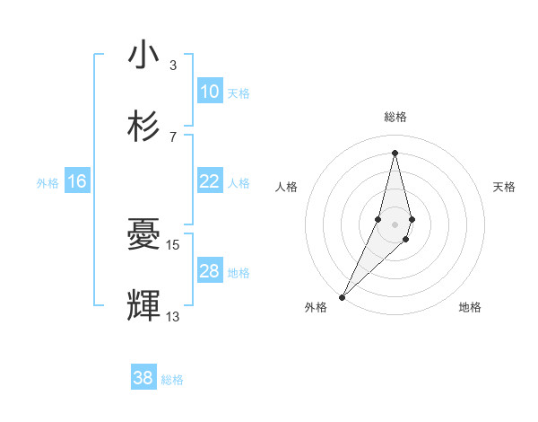 小杉 憂輝さんを姓名の画数から五運を鑑定