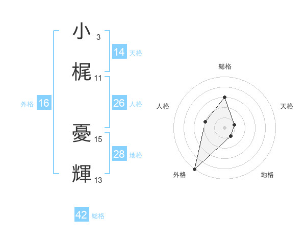 小梶 憂輝さんを姓名の画数から五運を鑑定