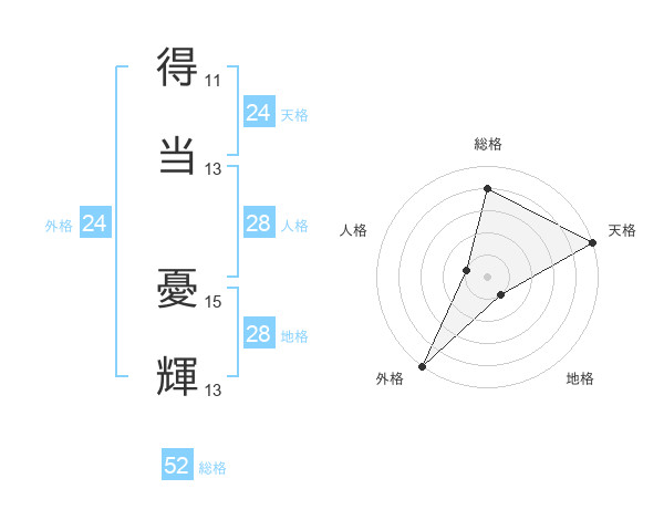 得当 憂輝さんの総格は52画の4点