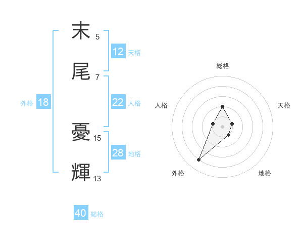 末尾 憂輝さんを姓名の画数から五運を鑑定
