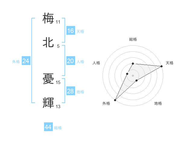 梅北 憂輝さんの外格は24画の5点!