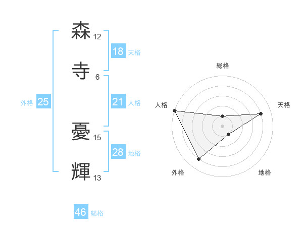 森寺 憂輝さんの天格は18画の4点!