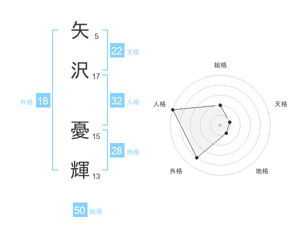矢沢 憂輝さんの総格は50画の2点!