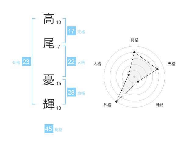 高尾 憂輝さんを姓名の画数から五運を鑑定