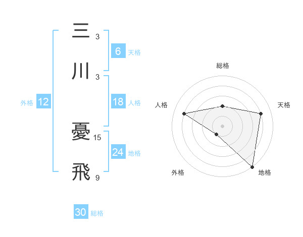 三川 憂飛さんを姓名の画数から五運を鑑定