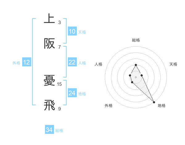 上阪 憂飛さんを姓名の画数から五運を鑑定