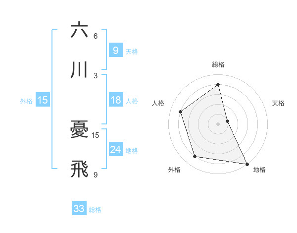 六川 憂飛さんを姓名の画数から五運を鑑定