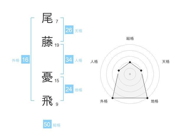 尾藤 憂飛さんを姓名の画数から五運を鑑定