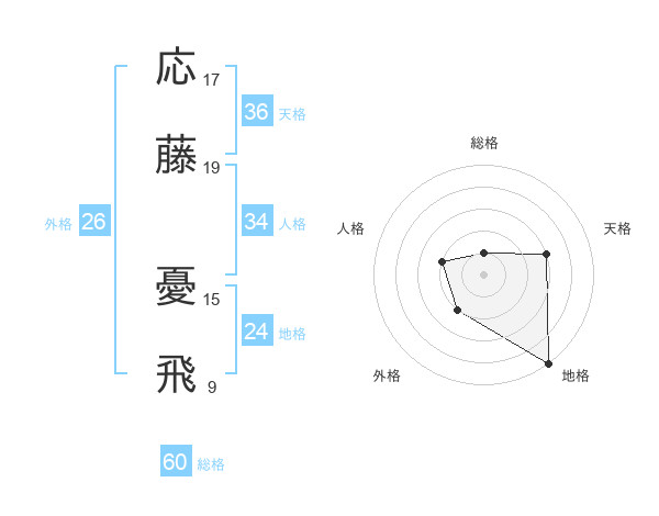 応藤 憂飛さんの総格は60画の1点!