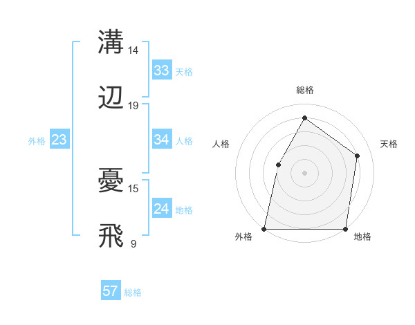 溝辺 憂飛さんの総格は57画の4点!