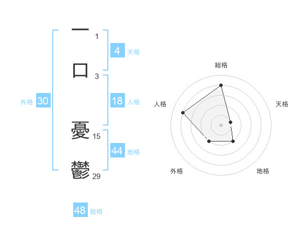 一口 憂鬱さんの外格は30画の2点!