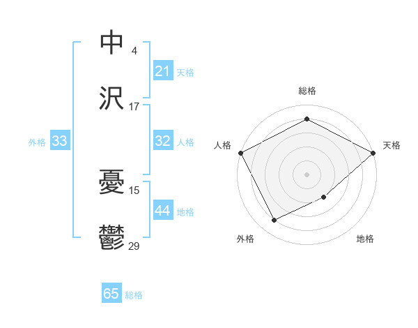 中沢 憂鬱さんの総格は65画の4点!
