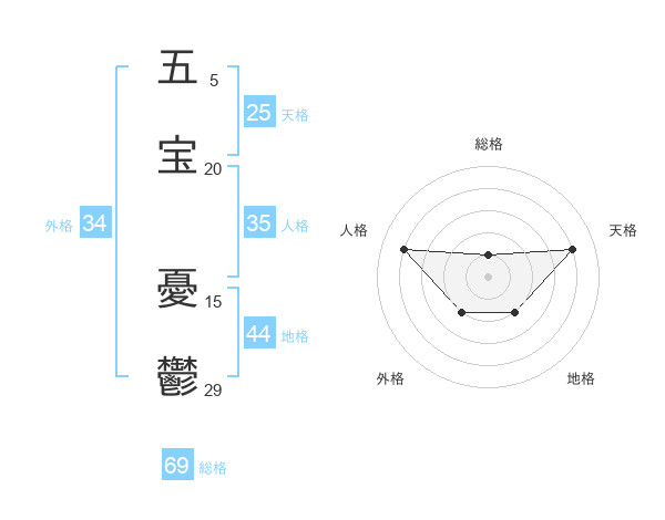 五宝 憂鬱さんの外格は34画の2点!