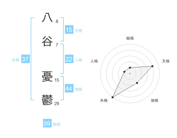 八谷 憂鬱さんを姓名の画数から五運を鑑定