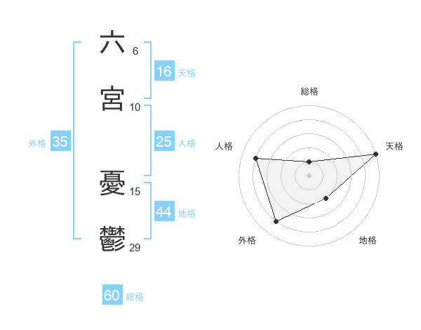 六宮 憂鬱さんを姓名の画数から五運を鑑定
