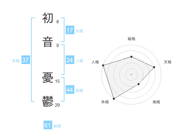 初音 憂鬱さんを姓名の画数から五運を鑑定