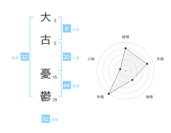大古 憂鬱さんを姓名の画数から五運を鑑定