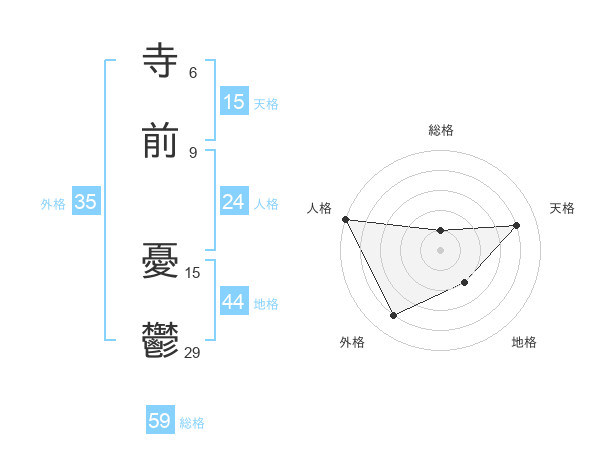 寺前 憂鬱さんの天格は15画の4点!