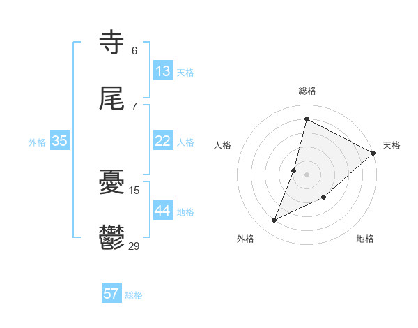 寺尾 憂鬱さんの総格は57画の4点!