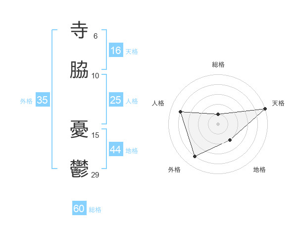寺脇 憂鬱さんを姓名の画数から五運を鑑定