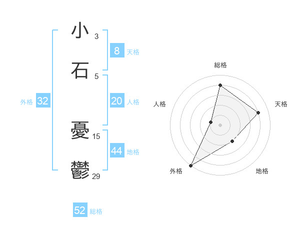 小石 憂鬱さんの外格は32画の5点!