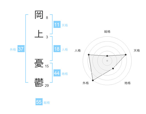 岡上 憂鬱さんを姓名の画数から五運を鑑定