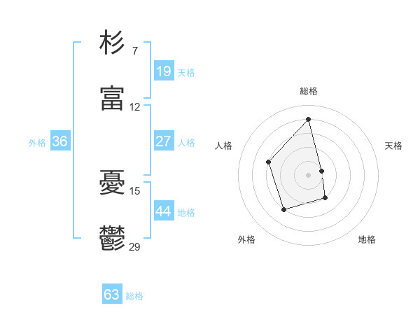 杉富 憂鬱さんを姓名の画数から五運を鑑定