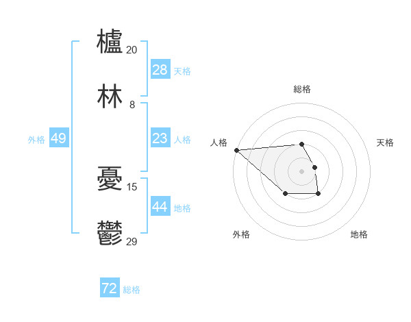 櫨林 憂鬱さんの総格は72画の2点!