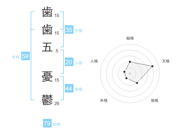 歯歯五 憂鬱さんの総格は79画の2点!