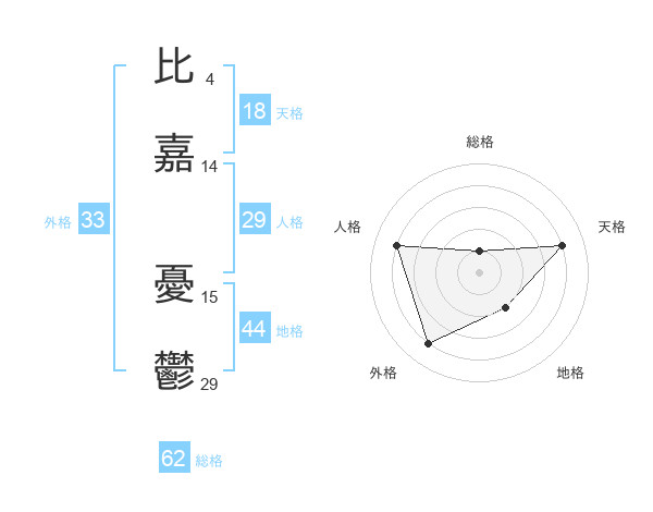 比嘉 憂鬱さんを姓名の画数から五運を鑑定