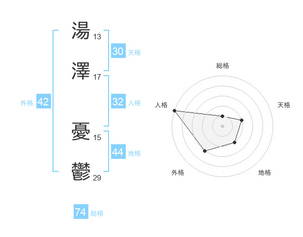湯澤 憂鬱さんの総格は74画の1点!
