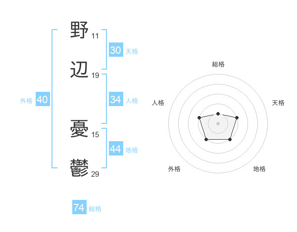 野辺 憂鬱さんを姓名の画数から五運を鑑定