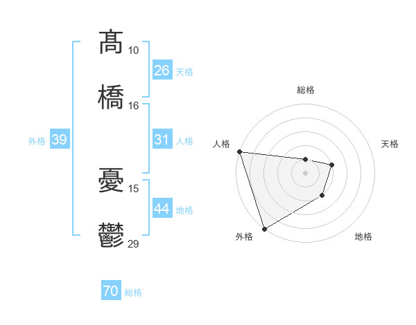 髙橋 憂鬱さんの外格は39画の5点!