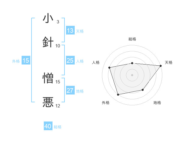 小針 憎悪さんの外格は15画の4点!