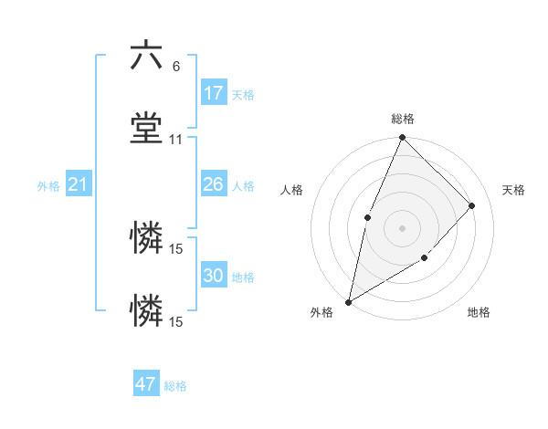 六堂 憐憐さんの総格は47画の5点!