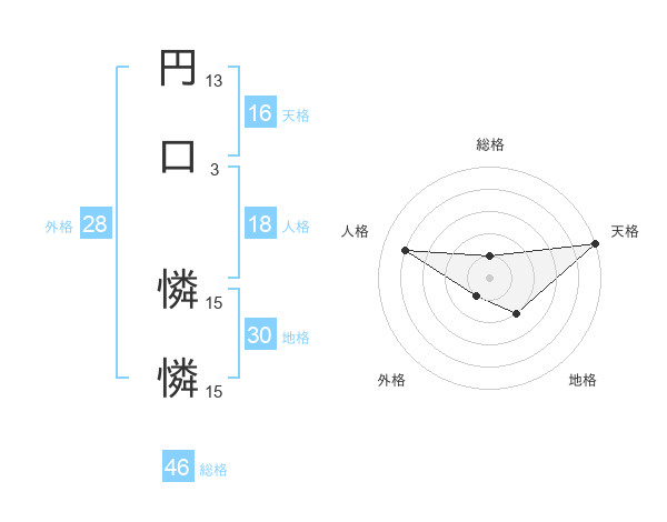 円口 憐憐さんの天格は16画の5点!