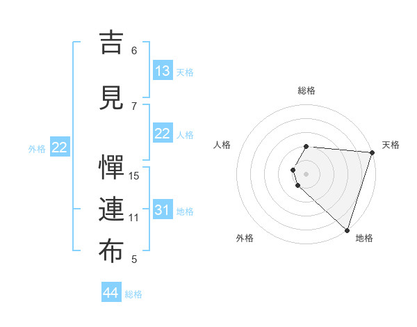 吉見 憚連布さんを姓名の画数から五運を鑑定