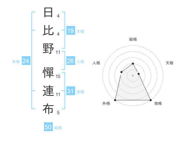 日比野 憚連布さんを姓名の画数から五運を鑑定