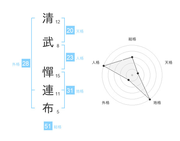 清武 憚連布さんの人格は23画の5点!