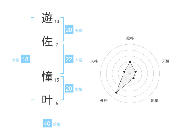 遊佐 憧叶さんの総格は40画の2点!