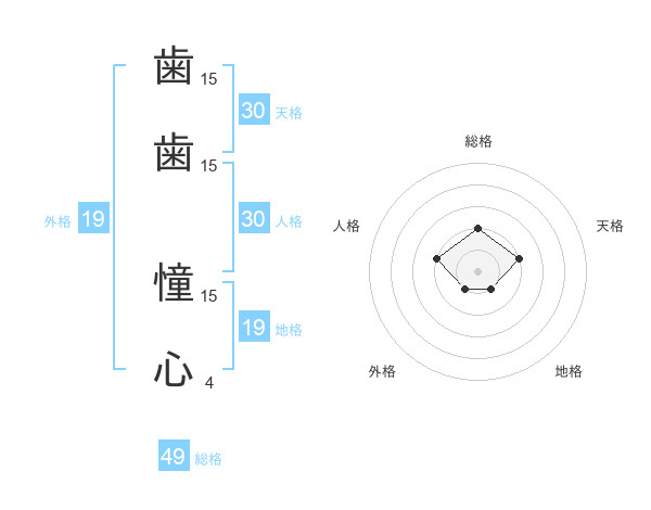 歯歯 憧心さんを姓名の画数から五運を鑑定