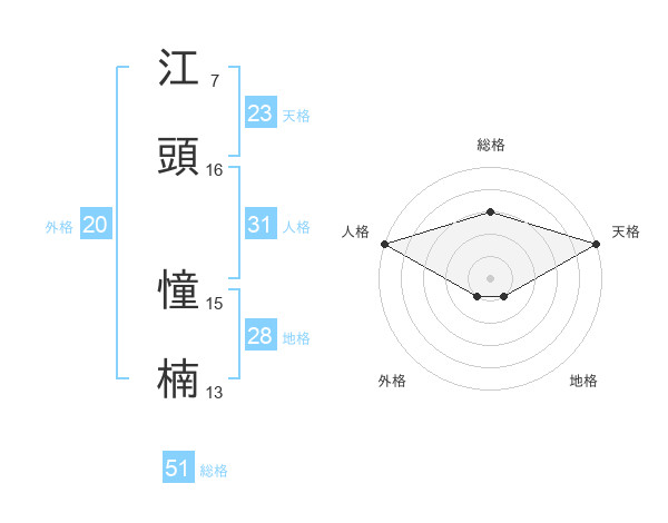 江頭 憧楠さんを姓名の画数から五運を鑑定