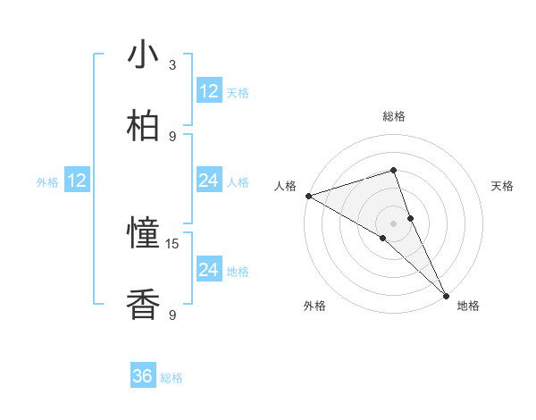 小柏 憧香さんを姓名の画数から五運を鑑定