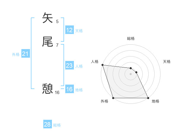 矢尾 憩さんの外格は21画の5点!