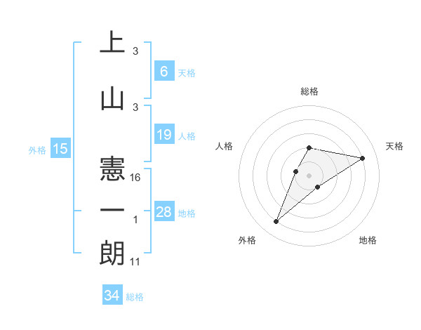 上山 憲一朗さんを姓名の画数から五運を鑑定
