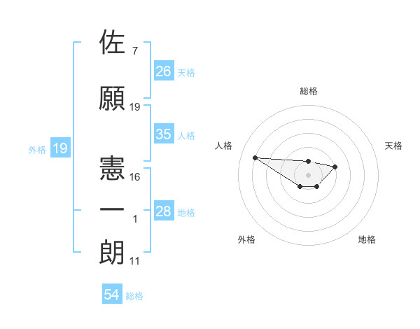 佐願 憲一朗さんを姓名の画数から五運を鑑定
