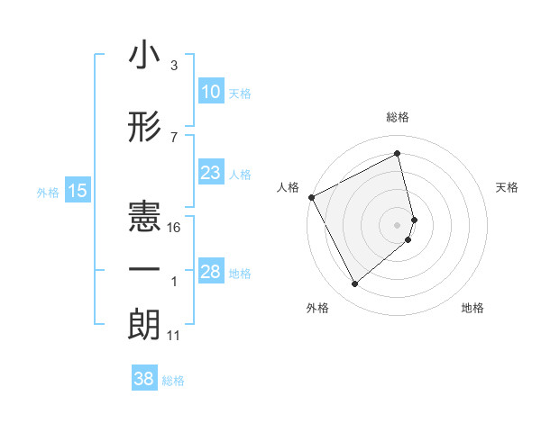 小形 憲一朗さんを姓名の画数から五運を鑑定