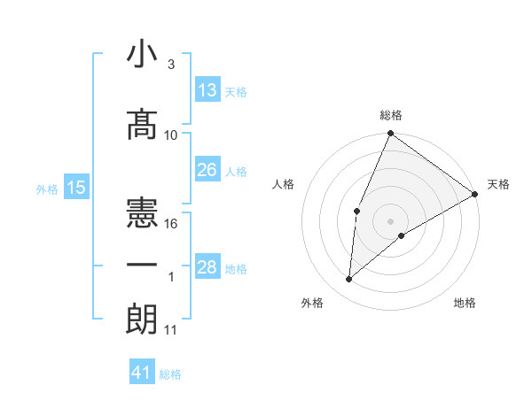 小髙 憲一朗さんを姓名の画数から五運を鑑定