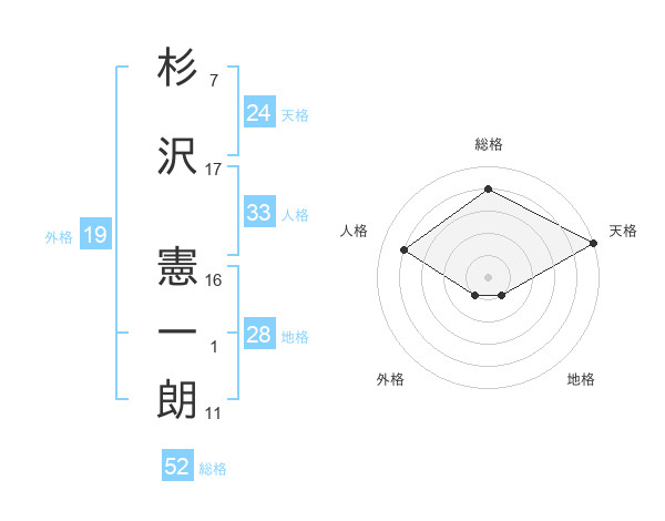 杉沢 憲一朗さんを姓名の画数から五運を鑑定