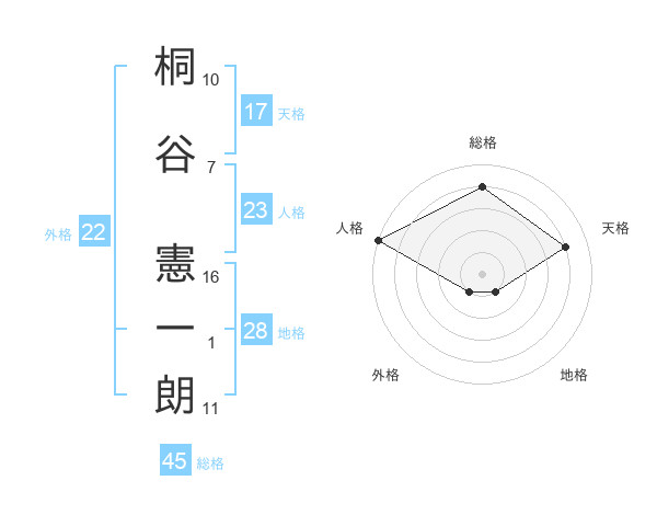 桐谷 憲一朗さんを姓名の画数から五運を鑑定